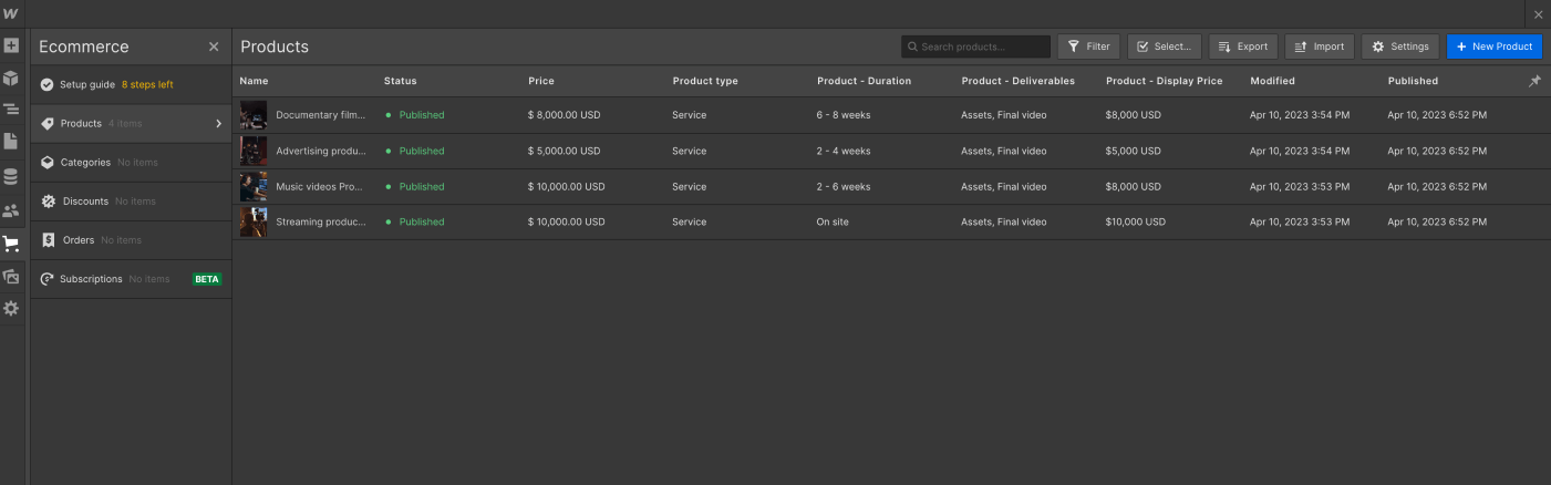 Products or eCommerce content function in a similar way to the CMS dynamic content, however, this is focused exclusively for eCommerce products.