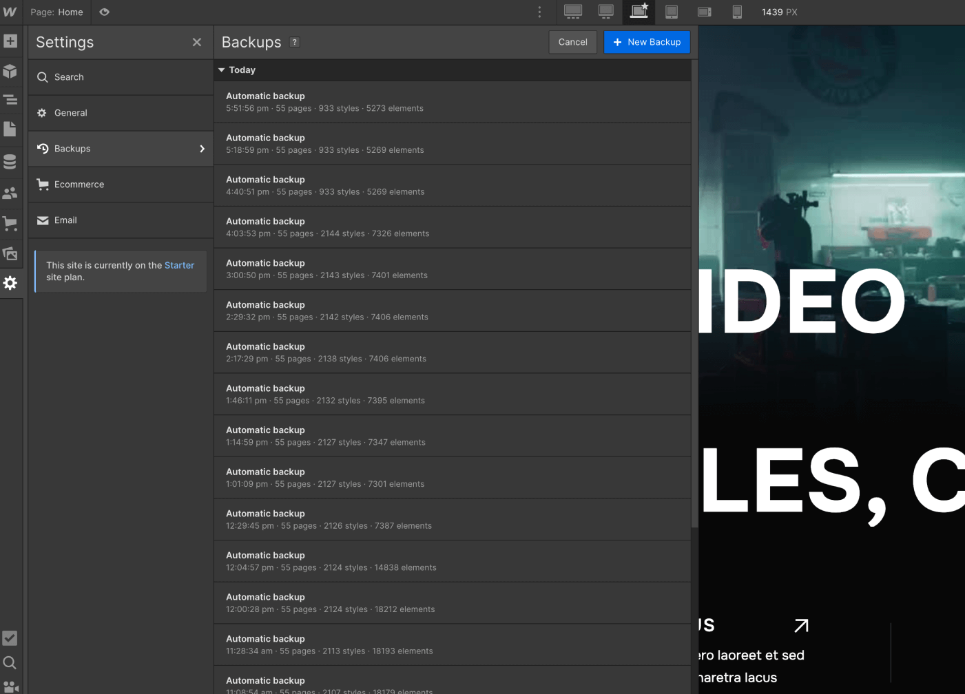 If something goes wrong, for example, if you are not liking where the website is going to, if you deleted some critical classes that were required to make the Template look nice, or if you just want to go to a previous version for any reason, you can always go to the Backups section.