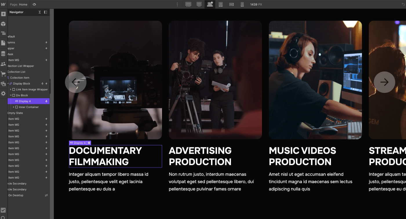 Everytime you make a change (for example, you create a new section design), it's a good practice to go to your Viewport top navigation and see how it looks on Tablet and Mobile.